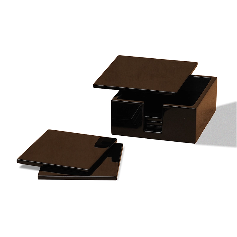Đế lót ly sơn mài vuông đen và hộp